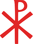 kreeka tähtedest X (hii) ja P (roo), kreeka sõnast XPIΣTOΣ. Lisatud on kreeka tähestiku esimene ja viimane täht, alfa